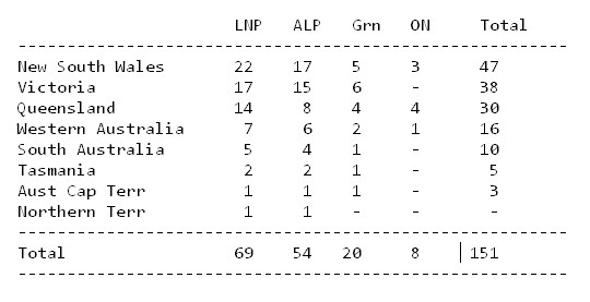 * You won’t find that figure on the AEC’s website; I’ve obtained it by disaggregating the merged votes for the LNP in Queensland and CLP in the Northern Territory. But the disproportion is much the same whichever way you cut it.